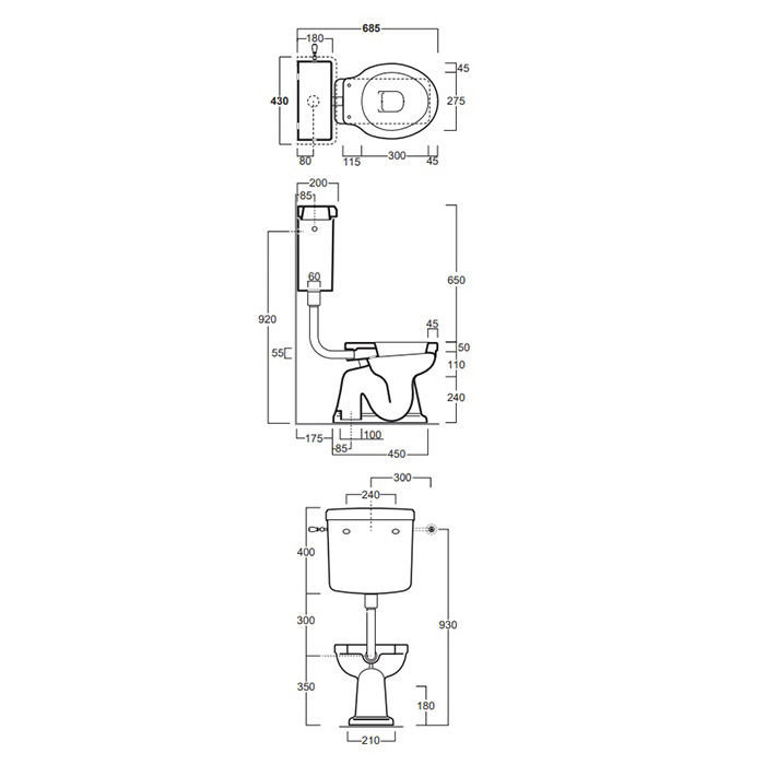 —SIMAS Londra Унитаз 60х36.5см, c вертикальным сливом со средним бачком, механизмом и трубой цвет хром