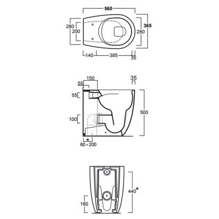 SIMAS Vignoni унитаз напольный приставной безободковый &quotRimless" высокий H=50см, 56х36,5см, слив универсальный, цвет: белый, сиденье на выбор