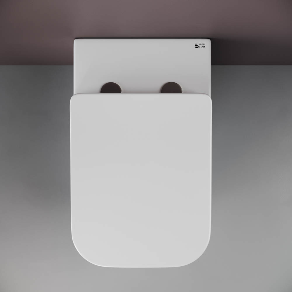 Напольный пристенный унитаз-соло Cubic Rimless, глубокий смыв, горизонтальный (универсальный) выпуск, с крепежом, ультра тонким с сидением и крышкой с функцией плавного закрытия, дюропласт