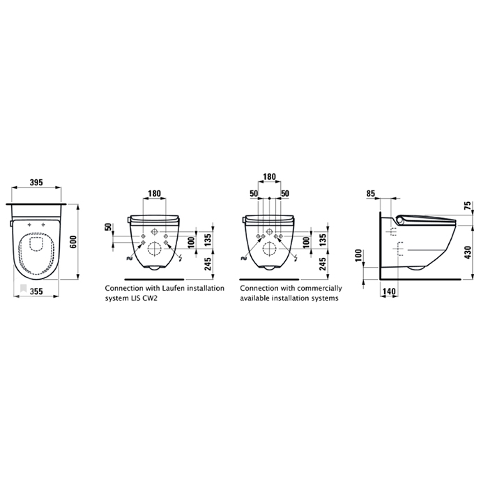 Laufen Cleanet Riva Унитаз-биде подвесной 600х395х405 мм, безободковый у с пультом дистанц. управления, с сиденьем, c покрытием LCC , цвет белый