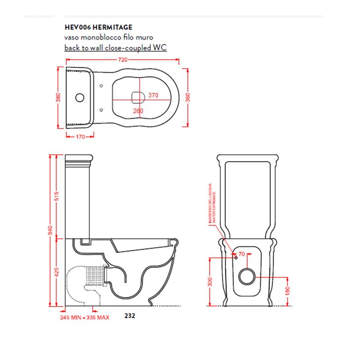 Artceram HERMITAGE унитаз моноблок пристенный 71х36см слив в стену, цвет: белый, сиденье на выбор