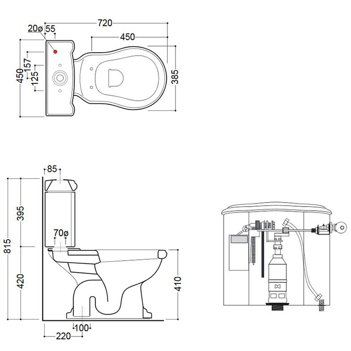 Kerasan Retro Бачок для унитаза моноблок 1012/1013, с боковым отверстием для ручки механизма, (без механизма слива), цвет белый