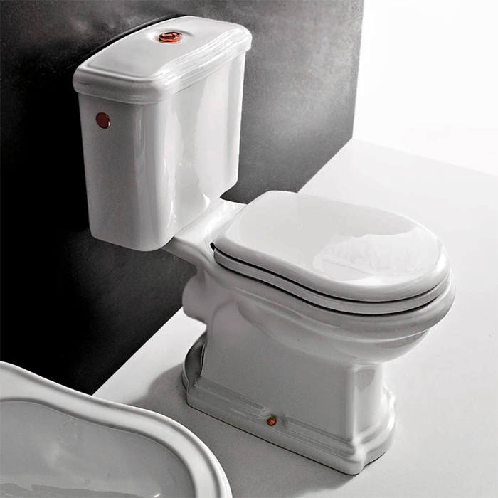 —Kerasan Retro, Унитаз моноблок 72х38.5см, слив в стену, с фурнитурой цвета бронза