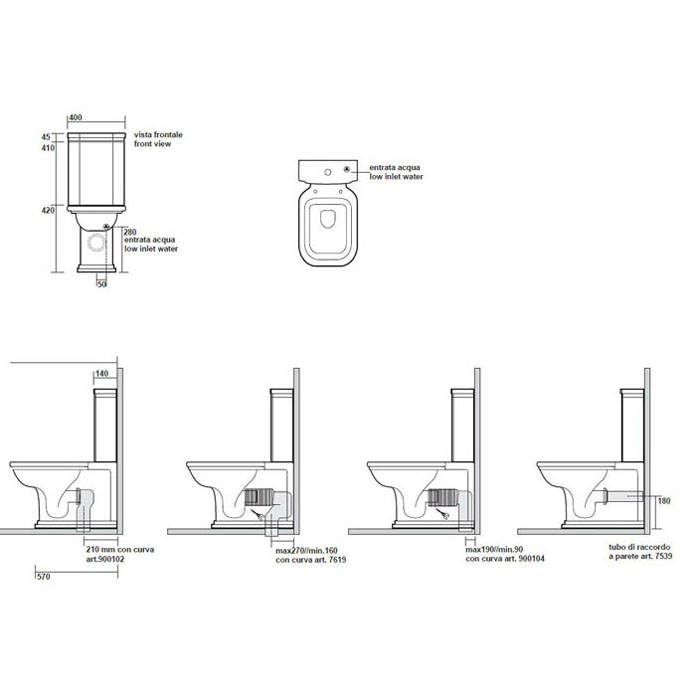 Kerasan Waldorf Унитаз-моноблок, 680*367мм, слив универсальный, цвет белый