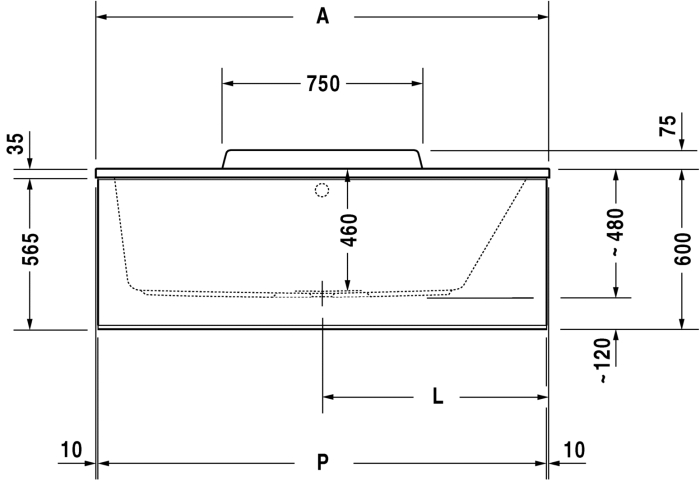 Положение слива (от изголовья)