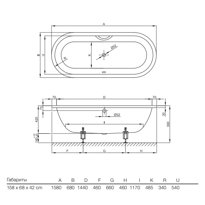 —Bette Starlet Ванна с шумоизоляцией встраиваемая, 158х68х42 см, BetteGlasur® Plus