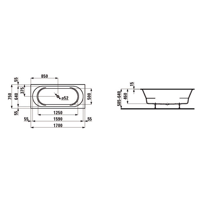 Laufen Pro Ванна встраиваемая, 170x75см., прямоугольная