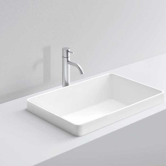 MILLDUE  Раковина  BASIC R58 встраиваемая сверху из CERAMILUX ,58х37х4,5 см, без отв для смесителя, цвет белый матовый