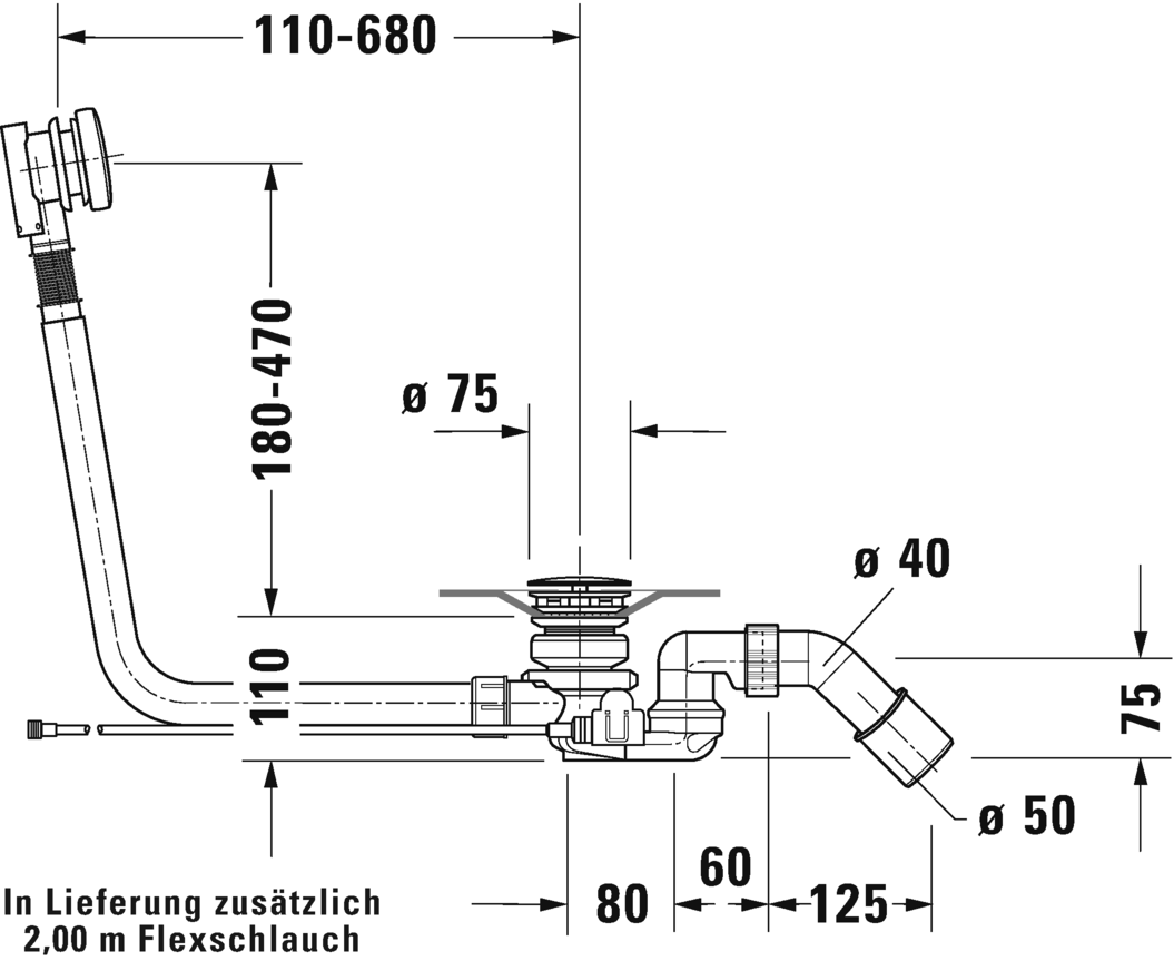 —Комплект слива-перелива квадратно-овальный с подачей воды снизу Duravit
