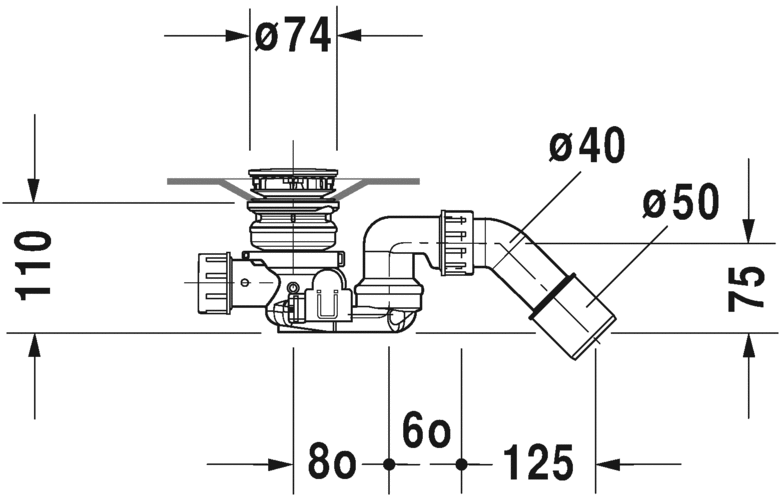 —Специальный комплект слива-перелива с подачей воды снизу (тросик 1250 мм) Duravit Blue Moon