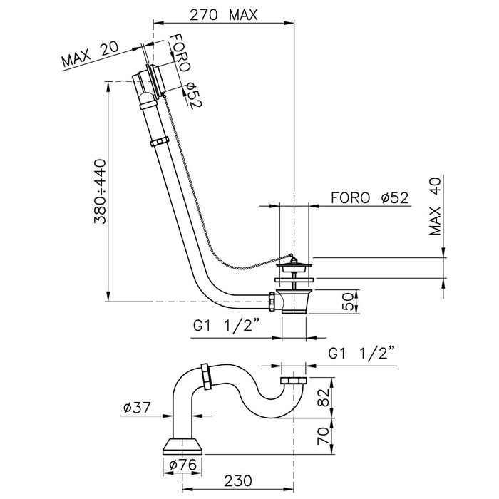 Nicolazzi Scarichi Слив-перелив для ванны, хром
