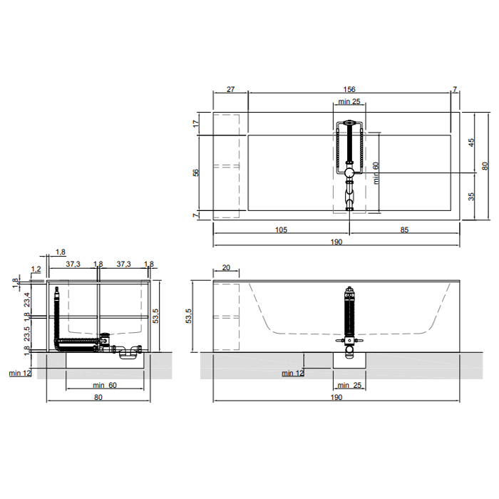 ANTONIO LUPI BIBLIO Ванна прямоугольная (4 стороны) 1900х800х535 мм., с нажимным донным клапаном, Corian, ванна белая, отделка Rovere naturale
