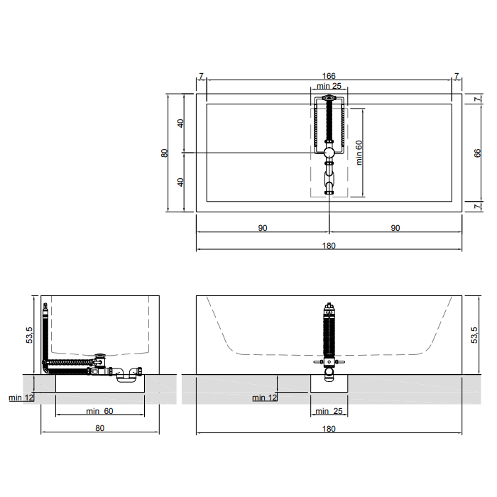 ANTONIO LUPI BIBLIO Ванна пристенная (2панели) 180х80х53.5 см, с сифоном и ,ножками и донным клапаном (хром), мат-л: Corian, цвет: белый