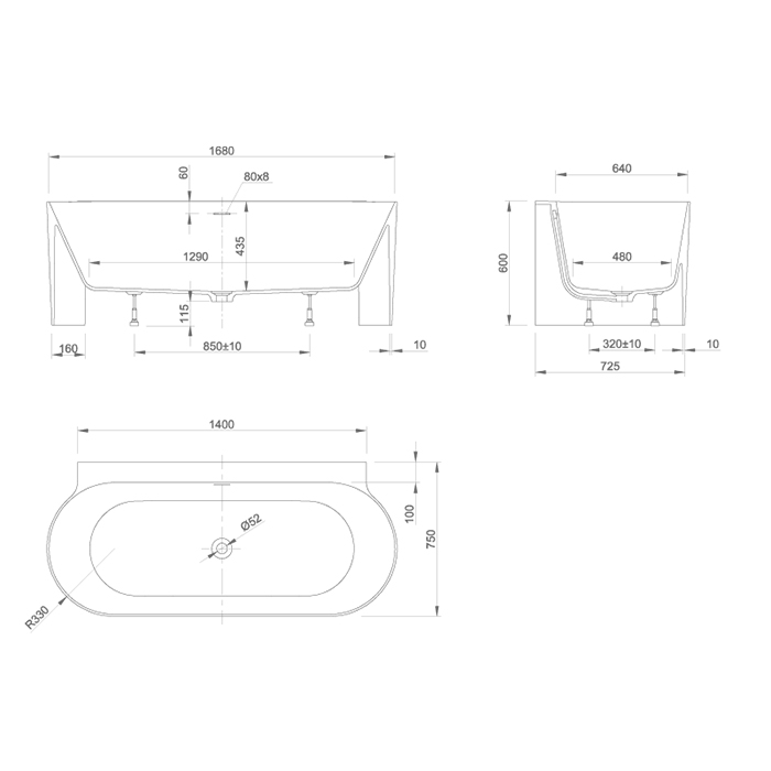 KNIEF COAST Ванна пристенная 170х75х60 см, из материала Stone, цвет белый матовый (СПЕЦЦЕНА со склада!)