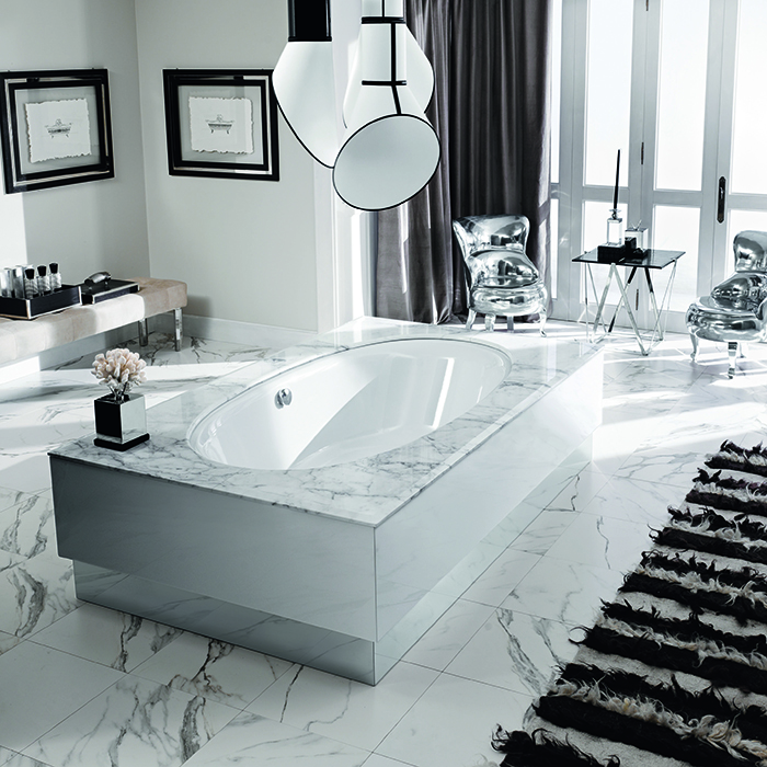—VITAGE milldue edition FOUR SEASONS Ванна 190х100 см, стальная, подача воды из крана, в комплекте с сифоном, основанием и мраморным топом, отдельностоящая, цвет: Bianco/Calacatta vagli