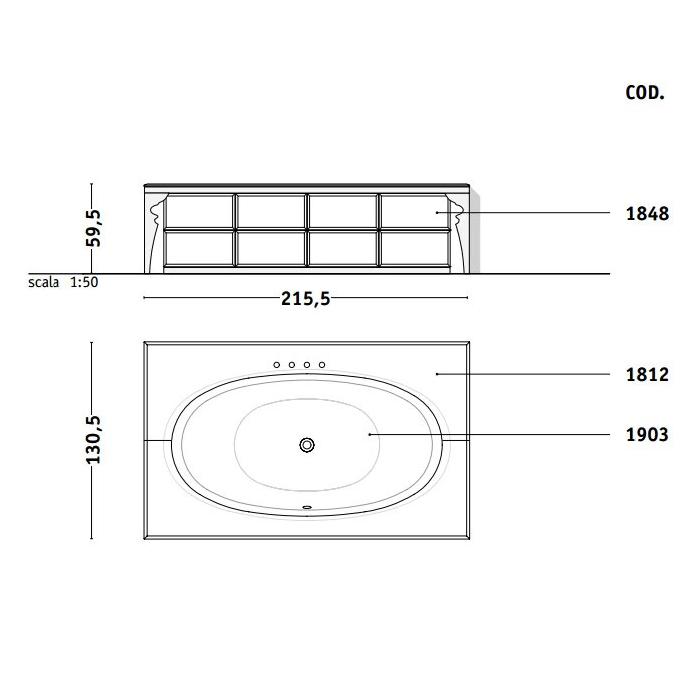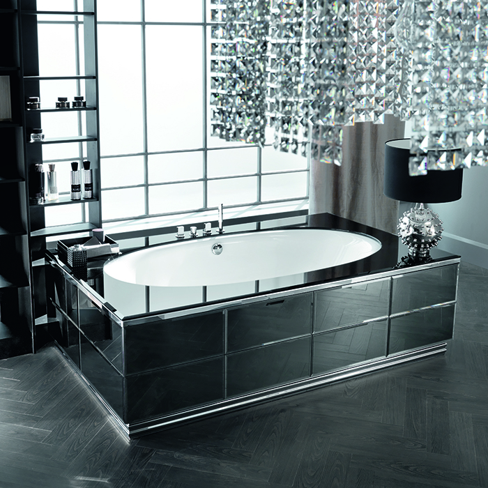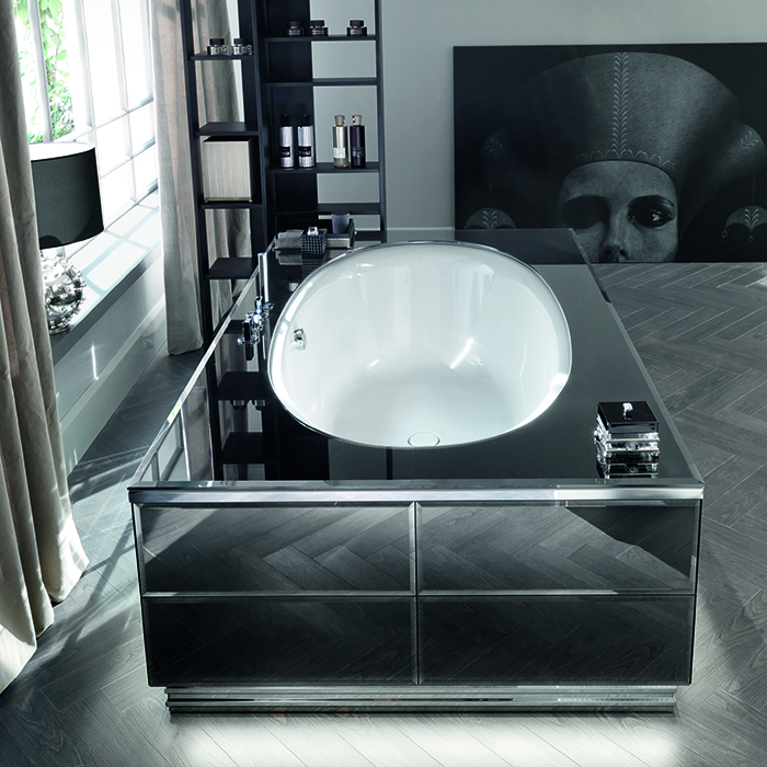 —VITAGE milldue edition Ванна 190х100см, стальная, подача воды из водослива, в комплекте с сифоном, основанием и зеркальным топом, отдельностоящая, цвет: белый/Fumè