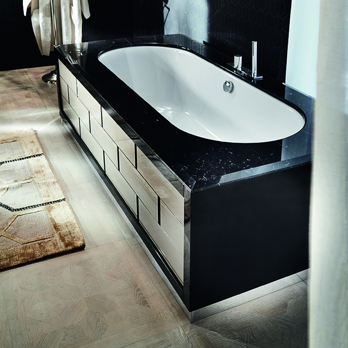 —VITAGE milldue edition RITZ Ванна 180х75см, стальная, подача воды из водослива, в комплекте с сифоном, основанием и мраморным топом, отдельностоящая, цвет: белый/Nero