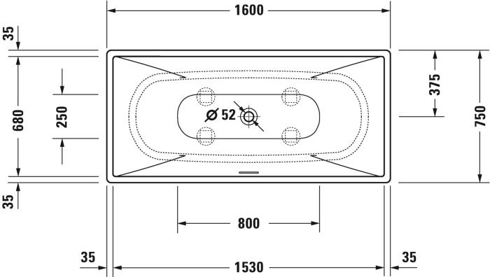 Положение слива (от изголовья)